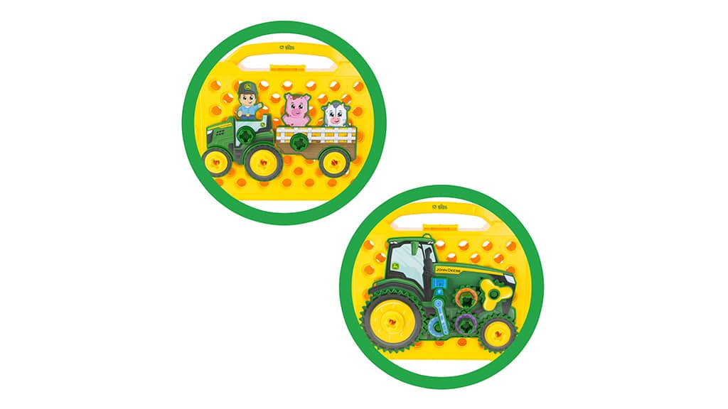 The John Deere Build-A-Buddy Activity board features two farm scenes. | Source: TOMY