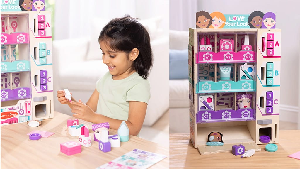 This vending machine playset dispenses wooden beauty products. | Source: Melissa & Doug