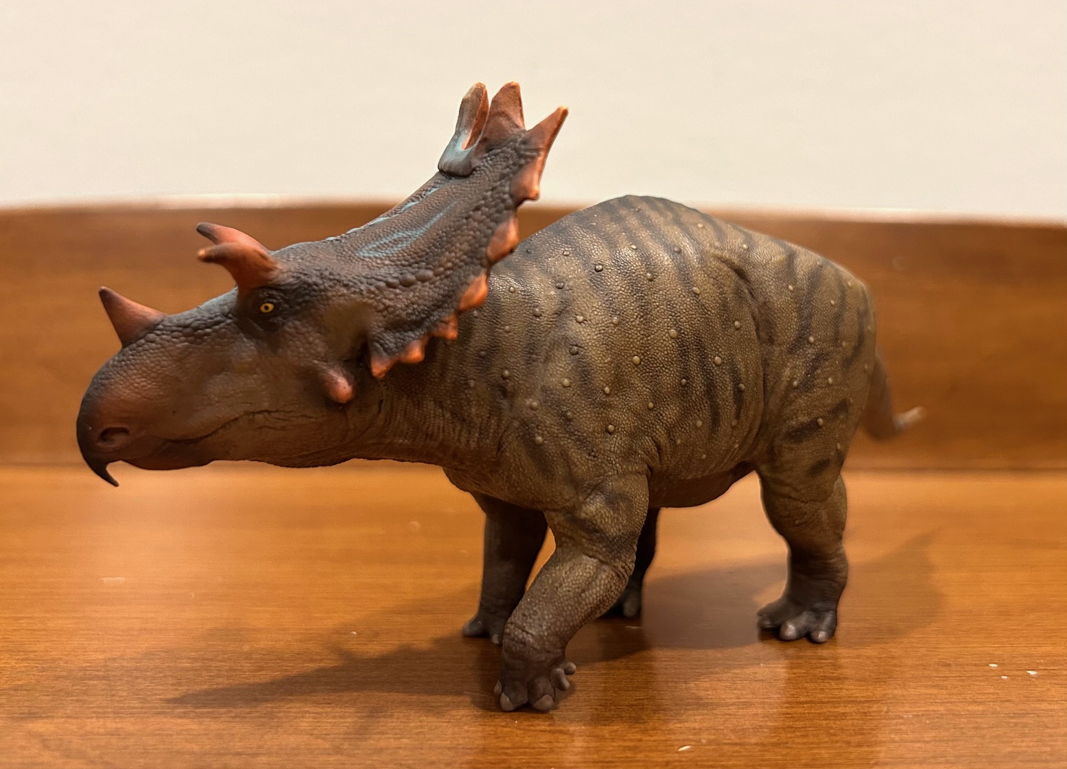 Back in 2021, I had the pleasure of reviewing the very first toy of the chasmosaurine ceratopsid Spiclypeus. Now here’s the second one, released by PNSO earlier this year and appropriately dubbed Judith after Montana’s Judith River Formation in which her species was discovered.