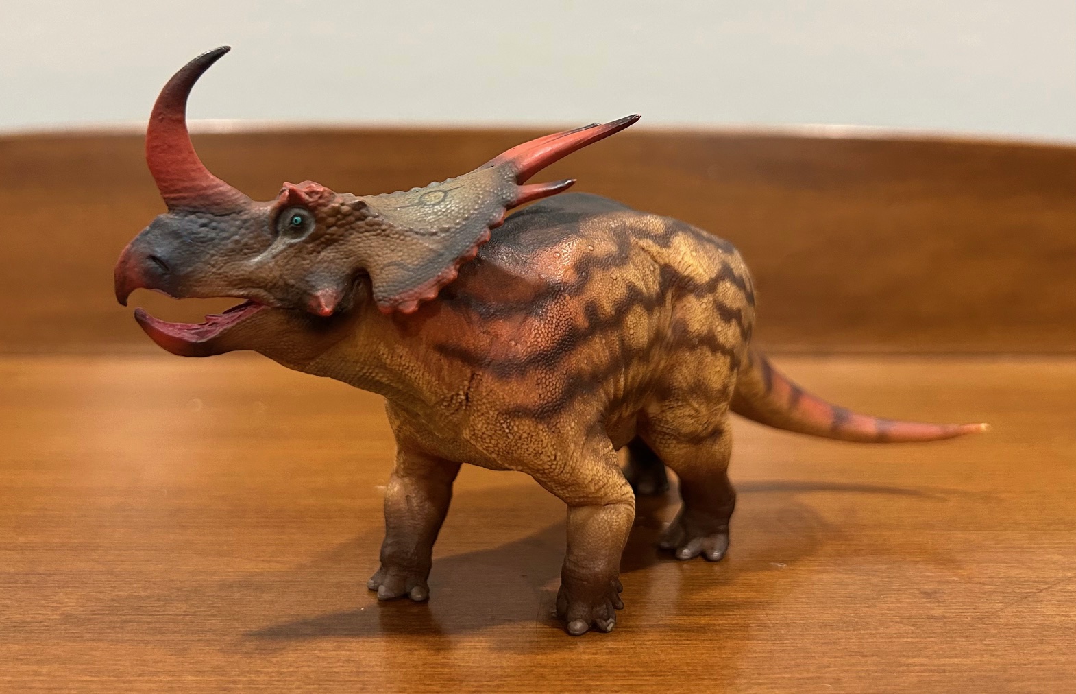 With the Haolonggood Styracosaurus, the Wild Safari Einiosaurus, and the Battat Pachyrhinosaurus.